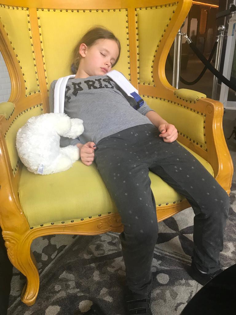 Sunt cazată, încălțată cu șlapi, nedușată, cu un double expresso machiato alături, țigărica și laptopul pe picioare. Am dormit vreo una-două ore în avion în niște poziții de yoga marcă înregistrată. Fata? No way baby. Nicio o secundă. Înainte să pic lată în prima poziție de yoga, chircită pe partea dreaptă cu un genunchi la gură, am încercat să o conving, ba am trecut și la amenințările obișnuite de părinte care nu are chef de parenting de-ăsta modern, prietenos: ”fără filme la zborul de întoarcere”. Nu am produs decât niște lacrimi și propriul meu somn, micuța a rămas pe baricade până la final. E leită mă-sa, puternică (a se traduce căpoasă, dar puternică dă mai bine la public). În taxiul care ne ducea la hotel a mai căscat de câteva ori, mi-a reamintit înțepată (ca să nu zic obraznică) că ea nu e deloc obosită, dar în final tot mama are dreptate și am și dovada: