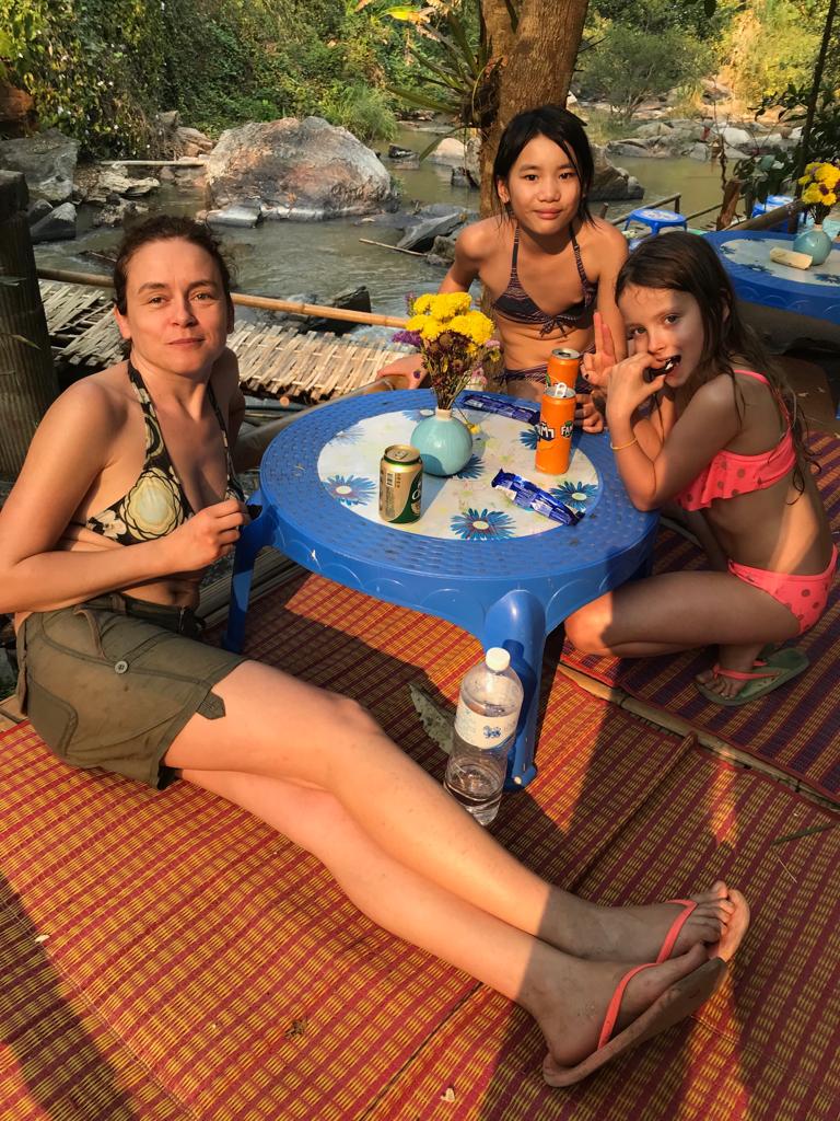 Cei patru elefanți de la ferma cu pricina, două doamne, o domnișoară și un băiețel, erau elefanți asiatici, adică mai mici decât cei africani, dar mai deștepți. Zicea ghidul că ar putea să ne deseneze cu nămol pe spate atât de talentați sunt, nu știu ce să zic, eu nu am zărit nicio intenție artistică la cei patru grăsuți. La început i-am hrănit, cu bucăți de trestie de zahăr. Prima interacțiune cu trompa a fost atât de neașteptată încât am avut impresia că o dată cu trestia va pleca și mâna mea în gura elefantului. După ce am râs isteric încercând să îi arăt fetei cât de relaxată e mama pentru a o încuraja în procesul de hrănire, m-am prins care e mișcarea și i-am hrănit pe bandă rulantă. Tot poporul s-a pozat cu elefanții, ce ne-aș fi dat o trompă în scăfârlii dacă eram în locul mamiferelor. Am trecut apoi la operațiunea nămolul sau Techirghiol. Omu’ s-a dat slăbit, sacrificându-se pe post de fotograf. Prostii, îi era o scârbă de nămol și de miros, adevărul că puțea ca la balamuc. Aia mică a rezistat vreo cinci minute, apoi a declarat că pe ea o plictisește toată treaba asta și se va retrage. Am rămas eu cu aia mare să frecăm elefantul până i-a trecut tot reumatismul. Finalul a fost baia în râu. De atâta plăcere elefantul meu se băgase complet sub apă și dădea semne de înec evident când colo ea elefănțica făcea doar treaba mare, iar eu o deranjam.