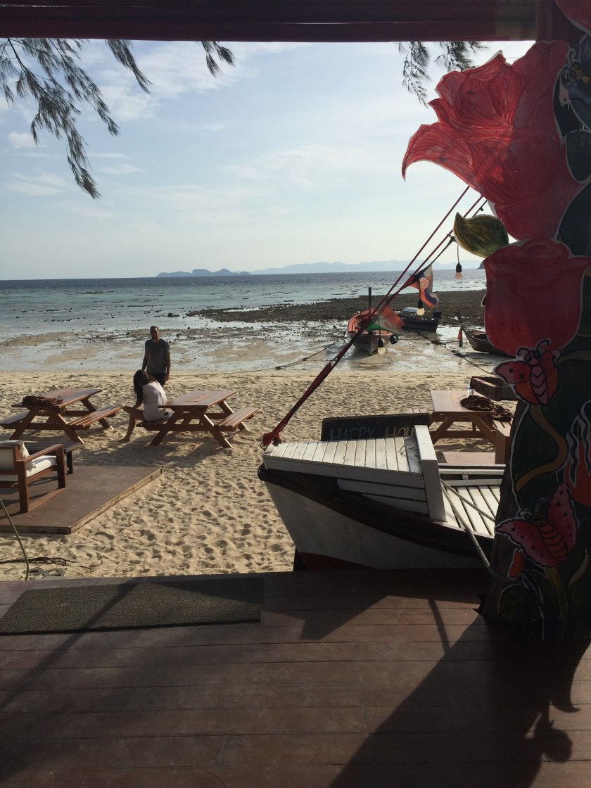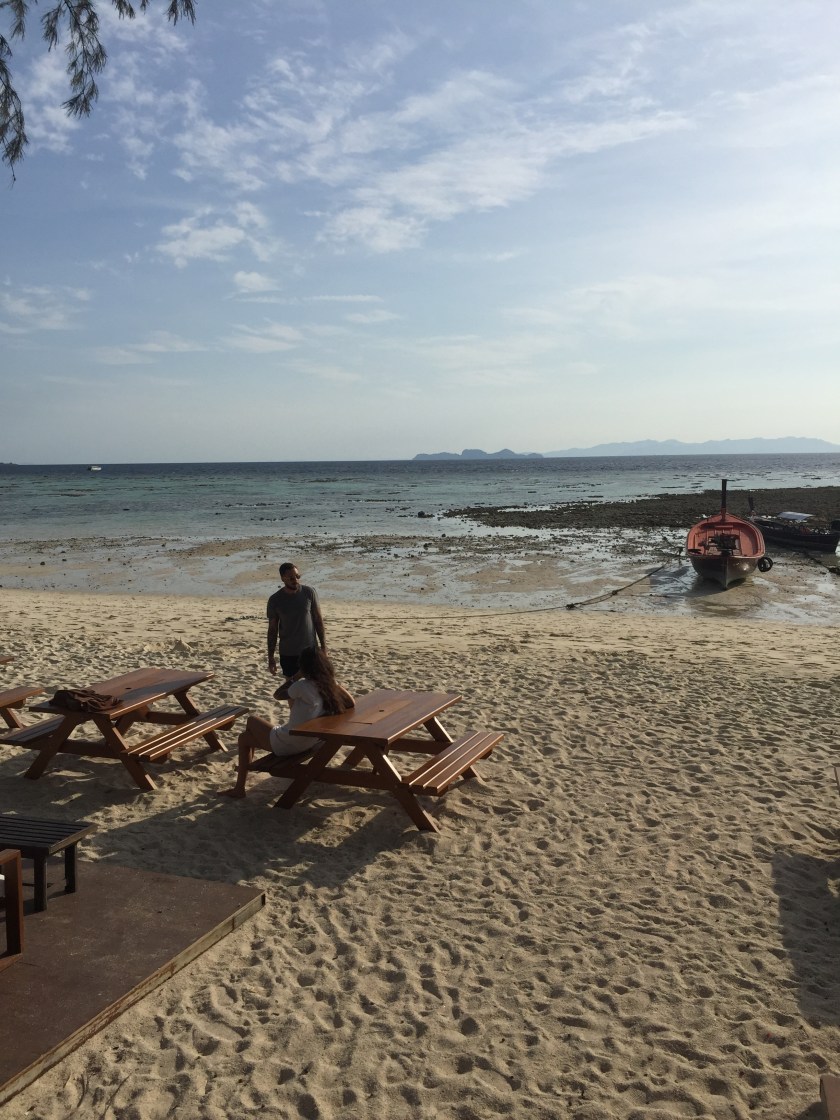 Insula Koh Lipe unde ne vom petrece restul vacanței e micuță rău, 2 km lungime și 2,5 km lățime. Turismul a explodat aici înainte ca insula și oamenii să fie pregătiți, prin urmare drumurile sunt precum șinele unui montaigne-rousse, se construiește la tot pasul și, prin unele locuri, pute de la canalizarea improvizată. Când am pus piciorul pe plajă (da, direct pe plajă, nu există port) și am dat de tipul de la hotel care ne aștepta, m-am simțit ca regina României venită la o cură tropicală. Sunt mai albă decât am fost vreodată, cei aproape șapte ani de Olanda mi-au extras tot pigmentul din piele, dacă pică vreo rază de soare pe mine, mă ard instant ca un rac.