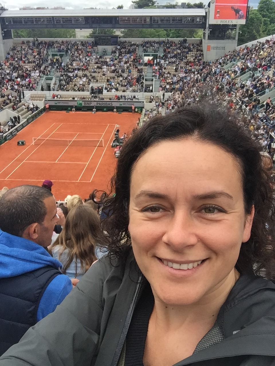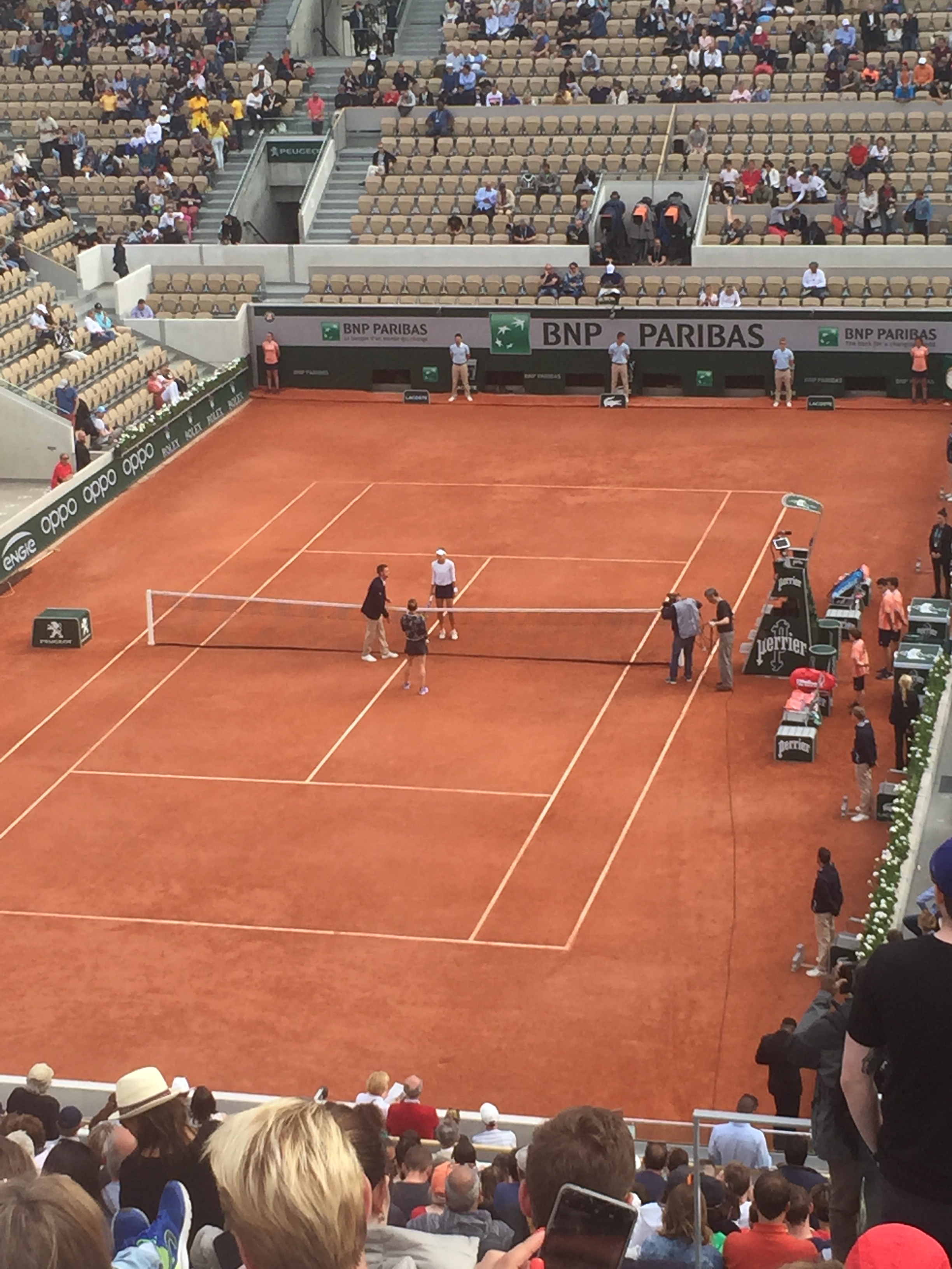 În metroul parizian, mai plăcut mirositor decât cum îl lăsasem cu 10 ani în urmă, ședeam strânsă toată pe un scaun, garniturile de tren fiind create pe vremea când procentul obezității era așa de mic că nu avea șanse să prindă loc în Parlament. Pe măsură ce mă apropiam de stația minune tot mai mulți împricinați urcau în tren, accesorizați cu sacoșe, șepci sau tricouri RG. Zâmbeam și mă făleam toată în sinea mea că fac și eu parte din mulțimea asta.