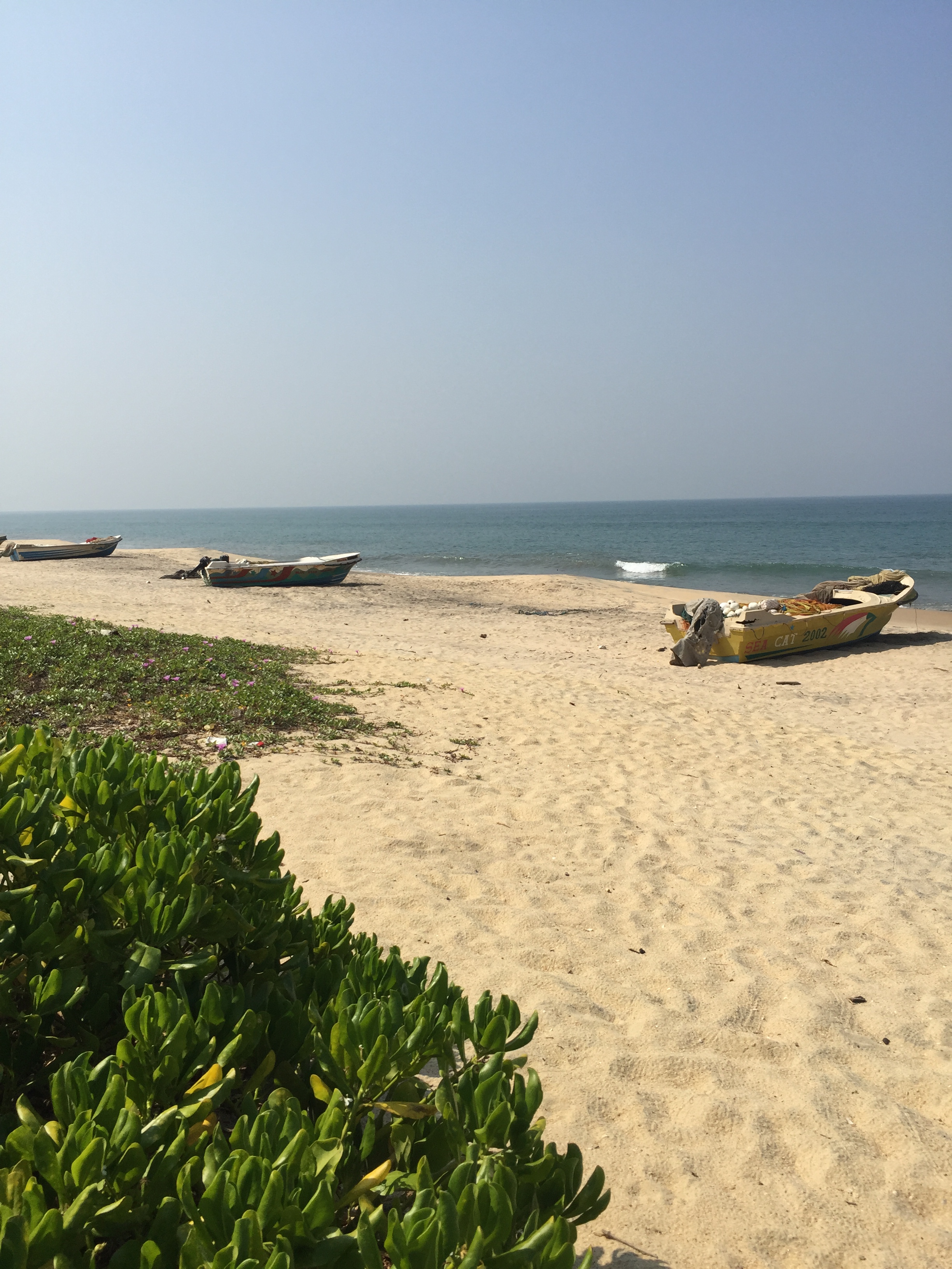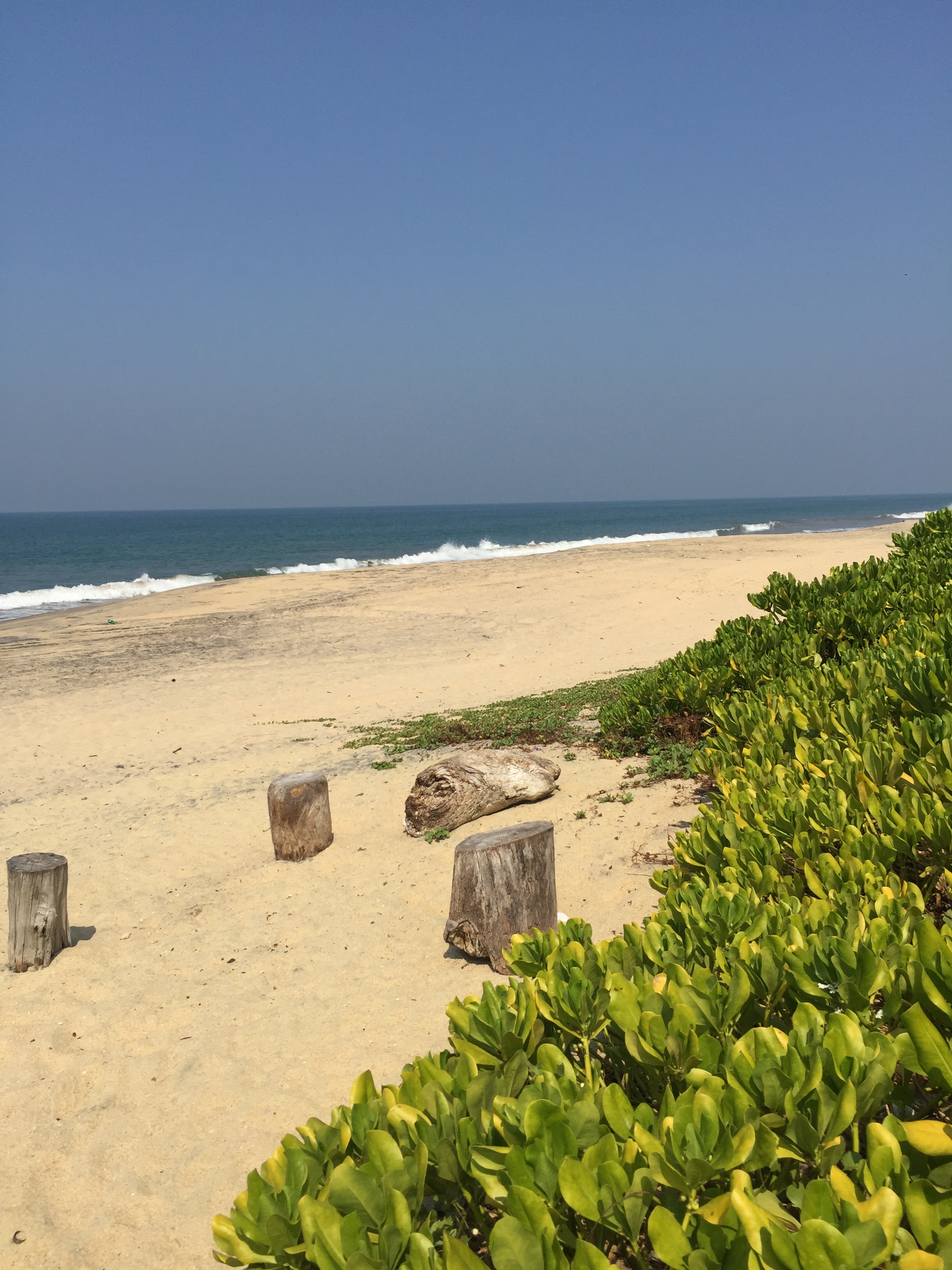 Am fugit să vedem marea. Agitată, extrem de caldă, cu valuri și curenți puternici. Crabi fugeau disperați din calea ei. Ne-am amuzat. Plaja era complet pustie, arătând mai mult a teren viran decât a sălbăticie. Cu nisip crem, maro deschis și negru.