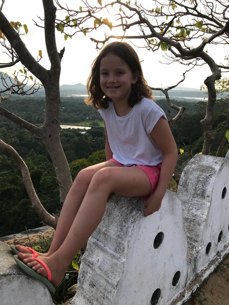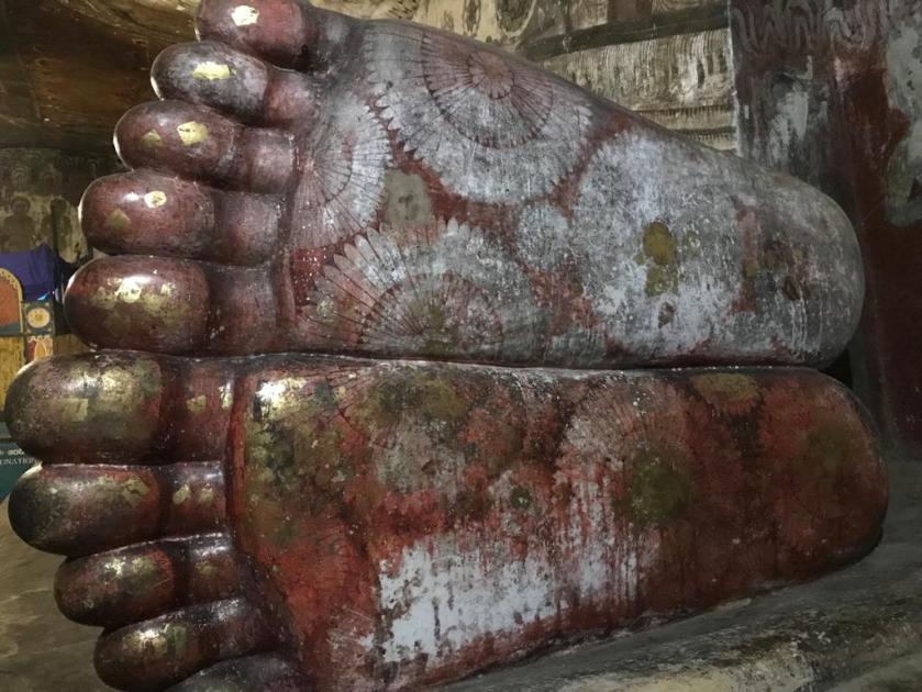 La intrarea în complexul Dambulla Cave Temple, ne-a întâmpinat un Budha uriaș, aurit, asortat cu o clădire în nuanțe de mov. I-am explicat micuței ce înseamnă kitsch și a decis cu o mină înțeleaptă că toată arătarea e într-adevăr un mare kitsch. Tot internetul ne avertizase să cumpărăm bilete înainte să începem urcușul celor câteva sute de trepte, noi am întrebat jos la ghișeu și am înțeles că trăbă să purcedem și ne vom lumina ulterior. Noi fetele ne-am descălțat și am petrecut următoarele ore în comuniune cu cimentul, amintindu-mi nostalgică de verile petrecute în sat la bunica când umblam prin șanț apăsând amuzată cu tălpile până ieșea lutul printre degetele de la picioare.