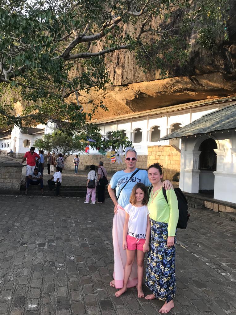 După ce ne-am cazat și micuța s-a îmbăiat un pic în piscinuță, am pornit la pas spre primul obiectiv: Dambulla Cave Temple. Aia mică tot bolborosea roșie la față de la căldură că nu înțelege și basta de ce nu am luat un tuk-tuk. Până la urmă și-a acceptat soarta crudă. Nu am văzut picior de turist de-a lungul celor 2,5 kilometri, doar un curcubeu de sari-uri și localnici care zâmbeau cu gura până la urechi în timp ce se holbau la albiturile de noi.
