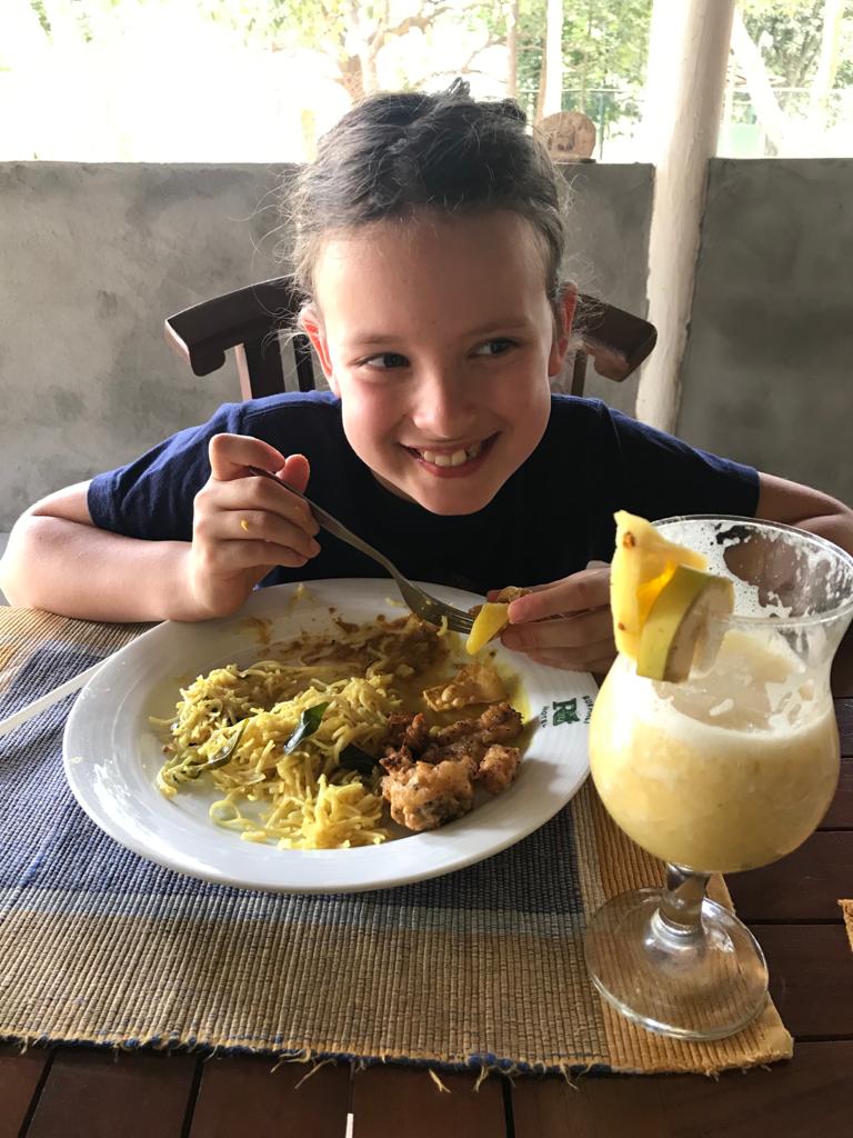 Ajunși înapoi la pensiune, ne-am luat la revedere de la frate-su, ne-am deratizat și eu i-am spus omului că aș vrea să cinăm într-un loc deosebit, mai aveam în vene încă poftă de explorat, culinar măcar. S-a băgat omu’ pe Trip Advisor și a găsit un loc în afara Dambullei, Mango Tree. Ne parfumăm, eu îmi ung buzele cu ruj roșu să mă asortez cu bluza mea faină și mergem la omu’ bun la toate care avea grijă de pensiune (recepționist, clovn, hostessă, bucătar, intermediar și multe altele) să aranjăm de un tuk-tuk. ”Of course, mam, wait at the reception”. Și am așteptat de ni s-au lungit urechile și mațele până a aterizat în față un safari-jeep. Îi zic: ”sir, we asked for a tuk-tuk”. ”Yes mam, this is for you”. Ne lămurim că vom plăti cât vrem, ne urcăm în jeep și după 500 de metri ne lasă șoferul la patiseria din colț, pe numele ei Mango Mango. Își aduce pitica aminte că zăpăcitul de șofer de seara trecută ne indicase și el acest loc falnic din centrul Dambullei. Începe un șir de telefoane cu pensiunea, niște negocieri silabisite, și pornim din nou la drum. Șoferul conducea cu o viteză de aproape zburam printre zăbrelele jeep-ului și după vreo 7 kilometri și vreo 2 opriri pentru a culege indicații, ajungem într-un pustiu în mijlocul pădurii la hostelul Mango Tree. Acolo doar un câine și o liniște mormântală. Apare o tinerică frumoasă și, după un schimb scurt de englezisme, omu’ meu îmi face semn să îmi mișc fundul din jeep. Se pare că ăsta era pomul lăudat, să avem răbdare că acu’ vine frate-su să ne gătească. Ne-am petrecut următoarea oră jucând cărți pentru că bucătarul ne-a gătit totul proaspăt și a durat ceva. Așteptarea a meritat deoarece rezultatul a fost un rice curry minunat și o discuție plăcută cu gazda care lucrase câțiva ani pe la ceva hoteluri mari în capitală, dar s-a hotărât să se întoarcă acasă și să își deschidă propria afacere, unde să gătească sănătos, cu materie primă de la producătorii locali și după propriile lui rețete. În tot acest timp, șoferul jeep-ului nu s-a mișcat de lângă noi, întărindu-mi convingerea că aici, o dată ce te-ai urcat într-o mașină, deveneai automat un membru al familiei și nu se cădea să te abandoneze pe la vreun Mango Tree rătăcit prin pădurile frumoase ale Sri Lankăi.