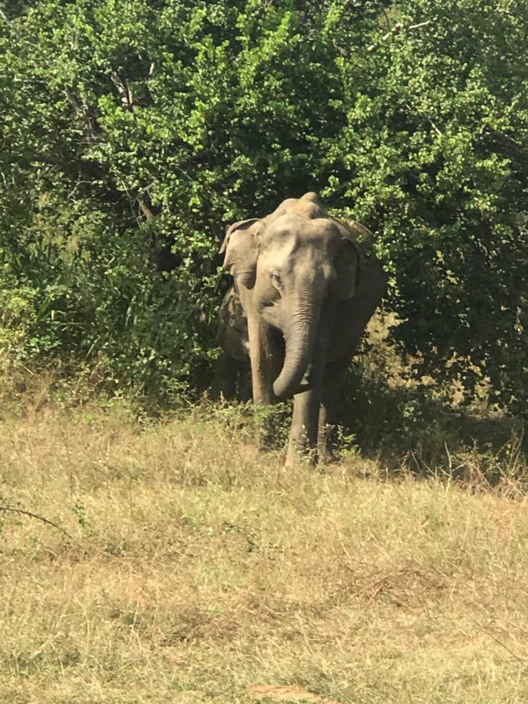 Ne-am scuturat de praf și am pornit spre arvunirea unui safari-jeep. Domnul a parcat într-o intersecție și a început să dea telefoane. Toată ziua ne-a dat impresia că habar nu are ce face, a și gafat de câteva ori, dar șontâc-șontâc a reușit să ne ofere tot ce am discutat cu soră-sa de cu seară. Probabil că am plătit mai mult decât trebuia pe safari, zic și eu așa de chitroasă, nu știu sigur și nici nu vreau să verific pentru că nu îmi doresc să mă amărăsc. Până la urmă a apărut un jeep, am negociat scurt cu șoferul și apoi am fost invitați să servim prânzul. Tot stil bufet, tot delicios, foarte delicios chiar, mai picant decât cel din ziua precedentă. Pe la 2 jumate am intrat cu jeepul în rezervația naturală și am purces la urmărirea elefanților. Noi și încă vreo 20 de jeepuri din care se ițeau capete de turiști și smart phone-uri.