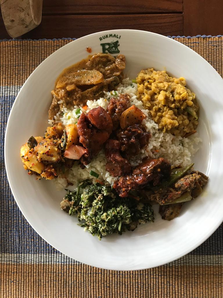 Ajunși înapoi la pensiune, ne-am luat la revedere de la frate-su, ne-am deratizat și eu i-am spus omului că aș vrea să cinăm într-un loc deosebit, mai aveam în vene încă poftă de explorat, culinar măcar. S-a băgat omu’ pe Trip Advisor și a găsit un loc în afara Dambullei, Mango Tree. Ne parfumăm, eu îmi ung buzele cu ruj roșu să mă asortez cu bluza mea faină și mergem la omu’ bun la toate care avea grijă de pensiune (recepționist, clovn, hostessă, bucătar, intermediar și multe altele) să aranjăm de un tuk-tuk. ”Of course, mam, wait at the reception”. Și am așteptat de ni s-au lungit urechile și mațele până a aterizat în față un safari-jeep. Îi zic: ”sir, we asked for a tuk-tuk”. ”Yes mam, this is for you”. Ne lămurim că vom plăti cât vrem, ne urcăm în jeep și după 500 de metri ne lasă șoferul la patiseria din colț, pe numele ei Mango Mango. Își aduce pitica aminte că zăpăcitul de șofer de seara trecută ne indicase și el acest loc falnic din centrul Dambullei. Începe un șir de telefoane cu pensiunea, niște negocieri silabisite, și pornim din nou la drum. Șoferul conducea cu o viteză de aproape zburam printre zăbrelele jeep-ului și după vreo 7 kilometri și vreo 2 opriri pentru a culege indicații, ajungem într-un pustiu în mijlocul pădurii la hostelul Mango Tree. Acolo doar un câine și o liniște mormântală. Apare o tinerică frumoasă și, după un schimb scurt de englezisme, omu’ meu îmi face semn să îmi mișc fundul din jeep. Se pare că ăsta era pomul lăudat, să avem răbdare că acu’ vine frate-su să ne gătească. Ne-am petrecut următoarea oră jucând cărți pentru că bucătarul ne-a gătit totul proaspăt și a durat ceva. Așteptarea a meritat deoarece rezultatul a fost un rice curry minunat și o discuție plăcută cu gazda care lucrase câțiva ani pe la ceva hoteluri mari în capitală, dar s-a hotărât să se întoarcă acasă și să își deschidă propria afacere, unde să gătească sănătos, cu materie primă de la producătorii locali și după propriile lui rețete. În tot acest timp, șoferul jeep-ului nu s-a mișcat de lângă noi, întărindu-mi convingerea că aici, o dată ce te-ai urcat într-o mașină, deveneai automat un membru al familiei și nu se cădea să te abandoneze pe la vreun Mango Tree rătăcit prin pădurile frumoase ale Sri Lankăi.