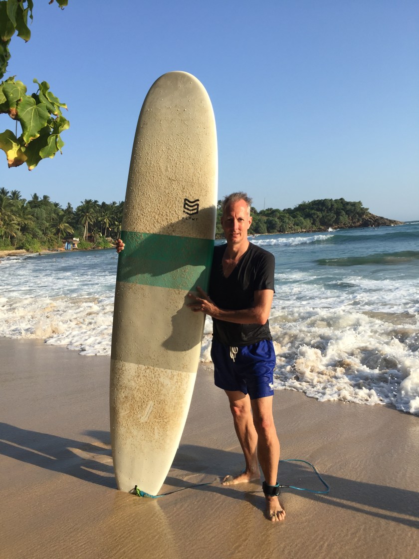 Hiriketiya nu e decât un mic golf cu valuri suficient de mari încât să atragă surferi. Nu știu multe despre surfing, de fapt nu știu nimic, însă sunt convinsă că profesioniștii se duc în Hawai sau Australia. Relația mea cu surfingul începe și se sfârșește cu filmul ”Point Break”, cel în care am făcut cunoștință prima oară cu Keanu Reeves, pe vremuri, în tinerețea mea. De acolo am învățat că surferii sunt niște tipi cool, bronzați, cu părul lung, fără apetit pentru respectarea regulilor. Omu’ meu și cu fi-sa arată a surferi la fel cum regina Angliei ar arăta încălțată în crampoane, făcând un dribling șugubăț pe Wembley. Asta nu i-a oprit în a închiria o placă și a pleca cu pletele în vânt spre valuri spumoase. Să îi urmărești o oră este ca și cum te-ai uita la un episod din ”Las fierbinți”. Omu’ primește însă puncte pentru încăpățânare și atitudine, a așteptat și el aliniat împreună cu ceilalți bronzați să prindă valul perfect. Reușea să se ridice pe placă aproximativ un centimetru după care se prăbușea crăcănat în ocean.